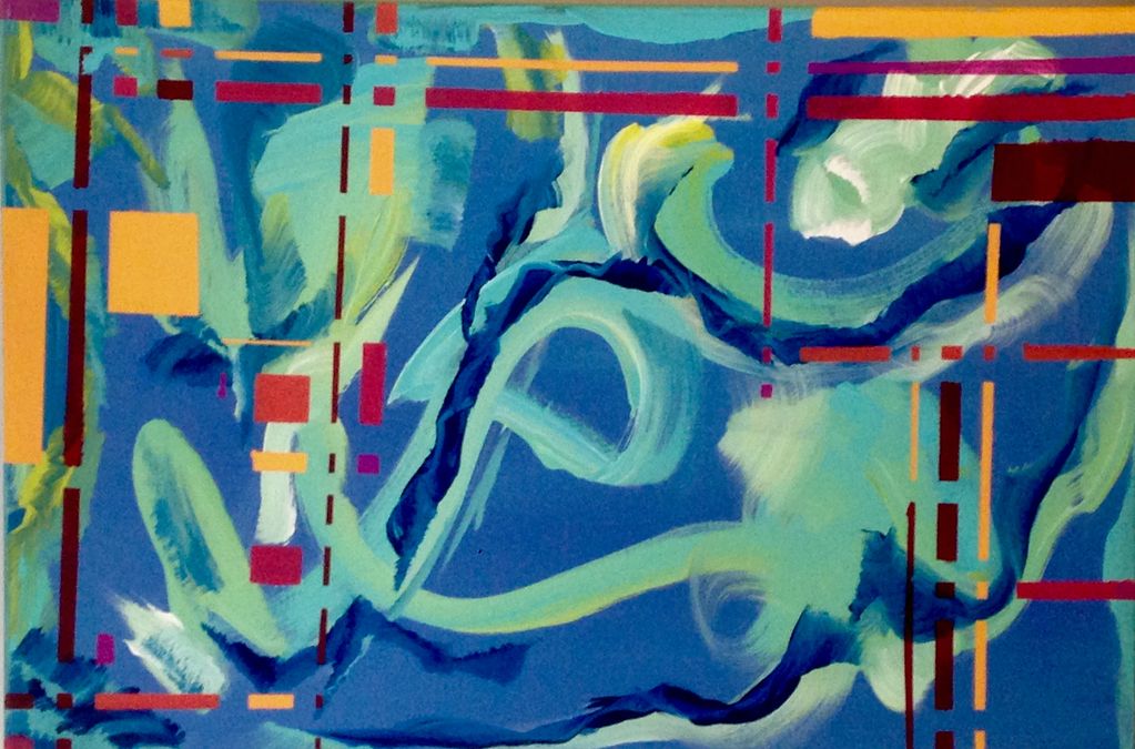 John Salvi, JUPITER'S HARMONY, 2018, acrylic on canvas, 24 X 36 X 1.5 in.
