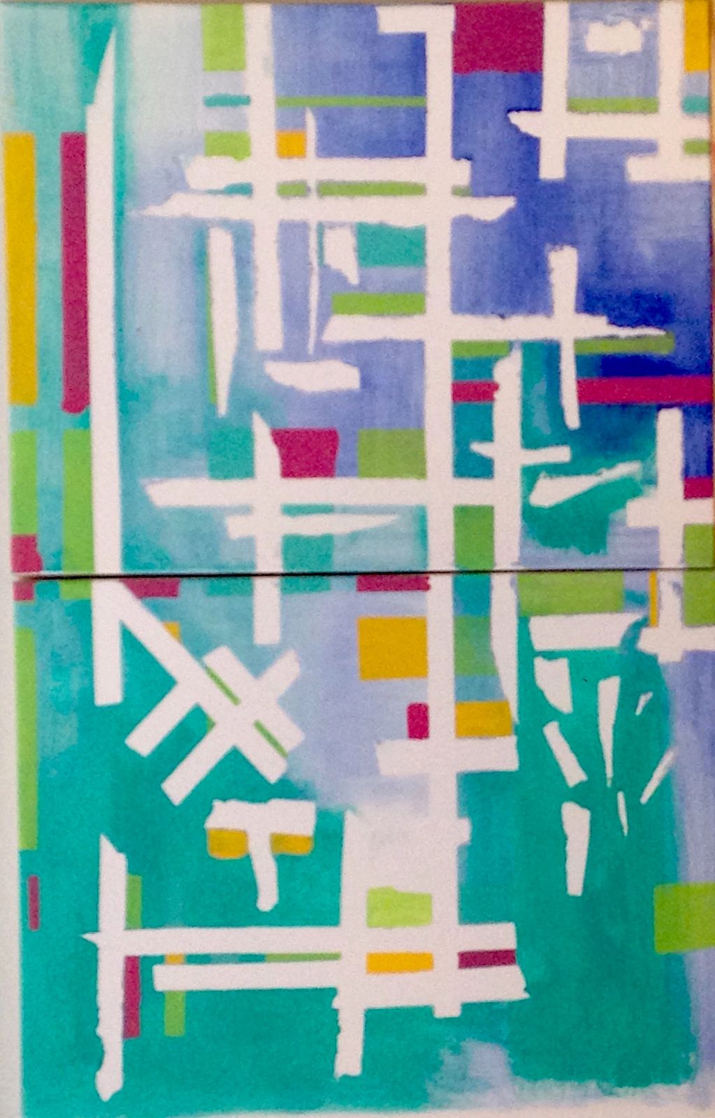 John Salvi, TRACKING GEOMETRY, 2018, diptych, acrylic on (2) canvases, each 20 X 16 X 1.5 in., diptych 40 X 16 X 1.5 in.